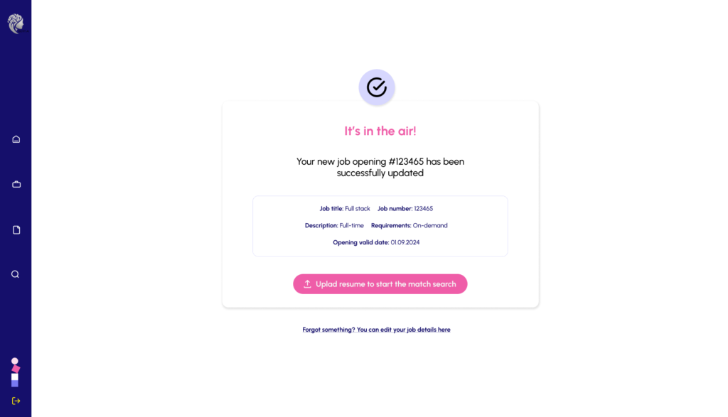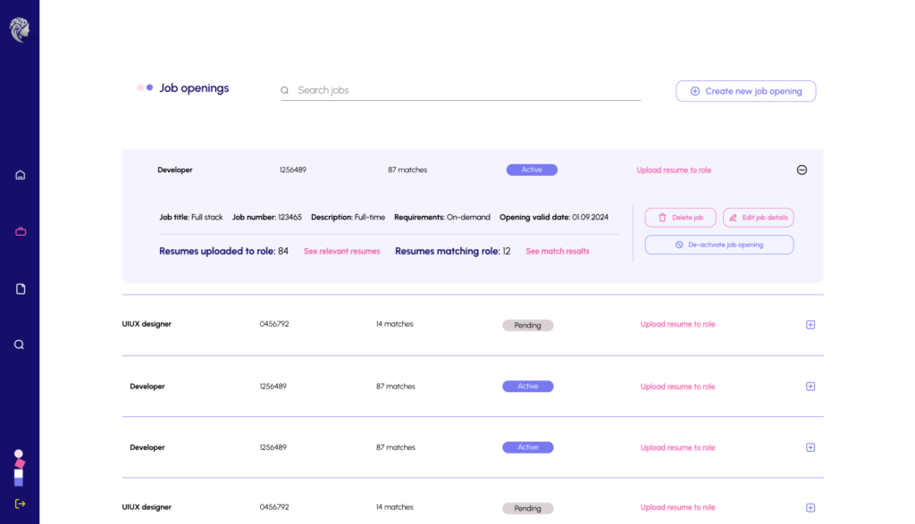 Translated the idea into a structured product flow, defining clear stages for job creation, candidate intake, AI filtering, and results presentation. Designed intuitive screens and hierarchies that allow recruiters to quickly understand matches and focus only on the most relevant candidates.