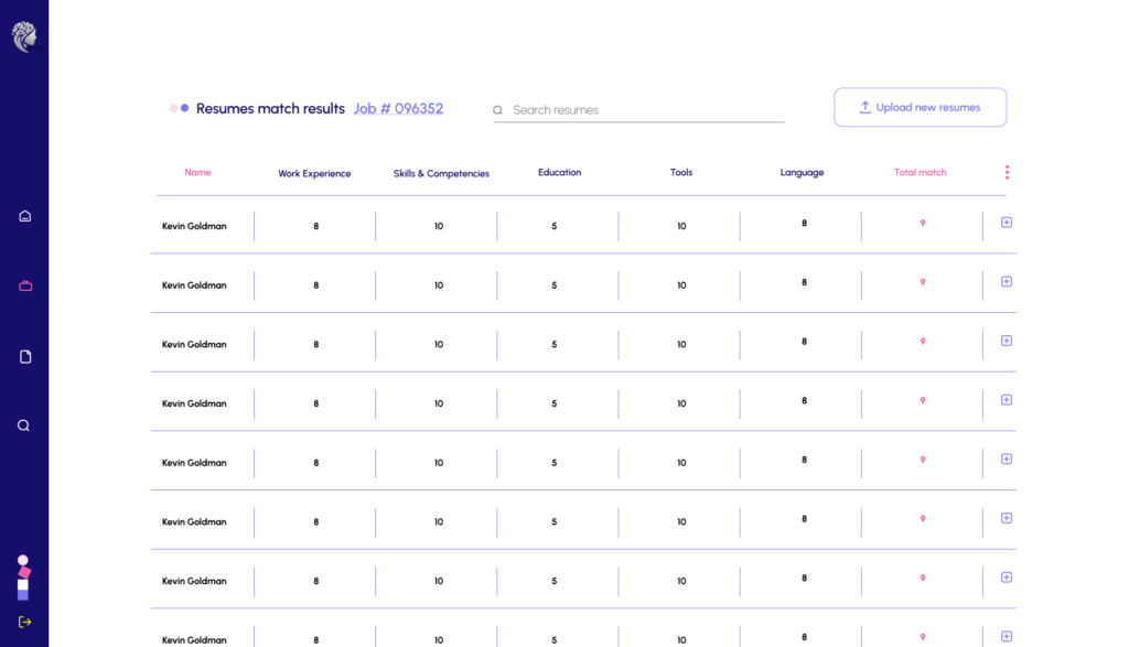 What a visual blessing! All those piles of resumes are displayed in an amazing chart with exact scores that perfectly match this role.