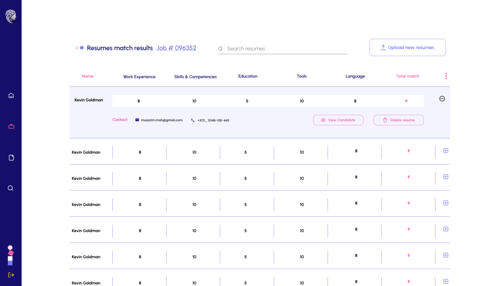With just one click, you can see the exact results of the candidate you are interested in. You can immediately schedule an interview, review the candidate's resume, or remove their details from the list to narrow down your choices.